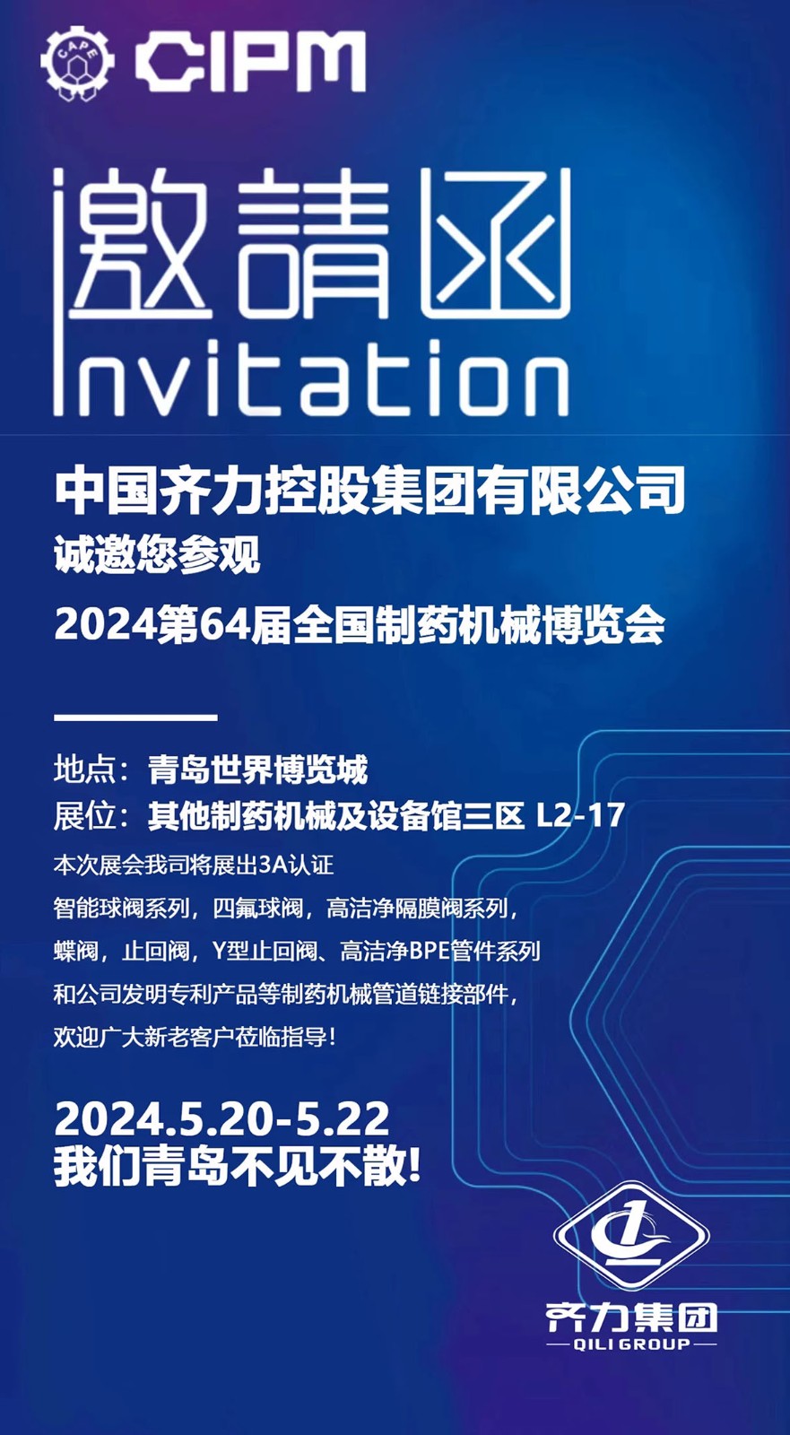 齐力参加2024年第64届(2024春季)全国制药机械博览会